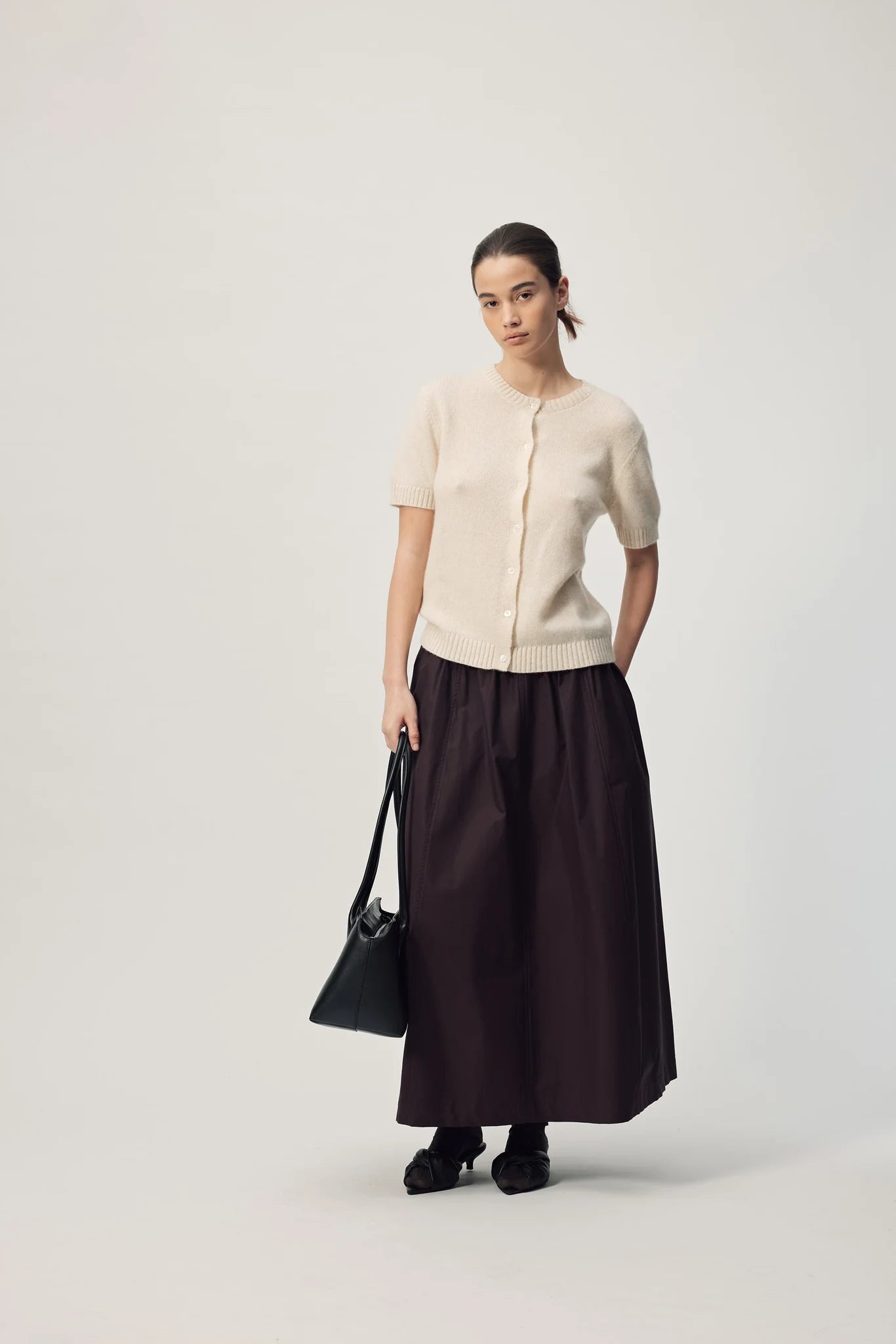 The Aurelia Cardi exemplifies refined elegance with its luxurious 100% cashmere construction. This short sleeve cardigan features a graceful round neckline and button front closure, designed with a distinctly feminine silhouette. Perfect for layering or wearing solo, the premium cashmere delivers exceptional softness and breathability, making it an investment piece that transcends seasonal trends. Ideal for those who appreciate understated sophistication and superior craftsmanship.
