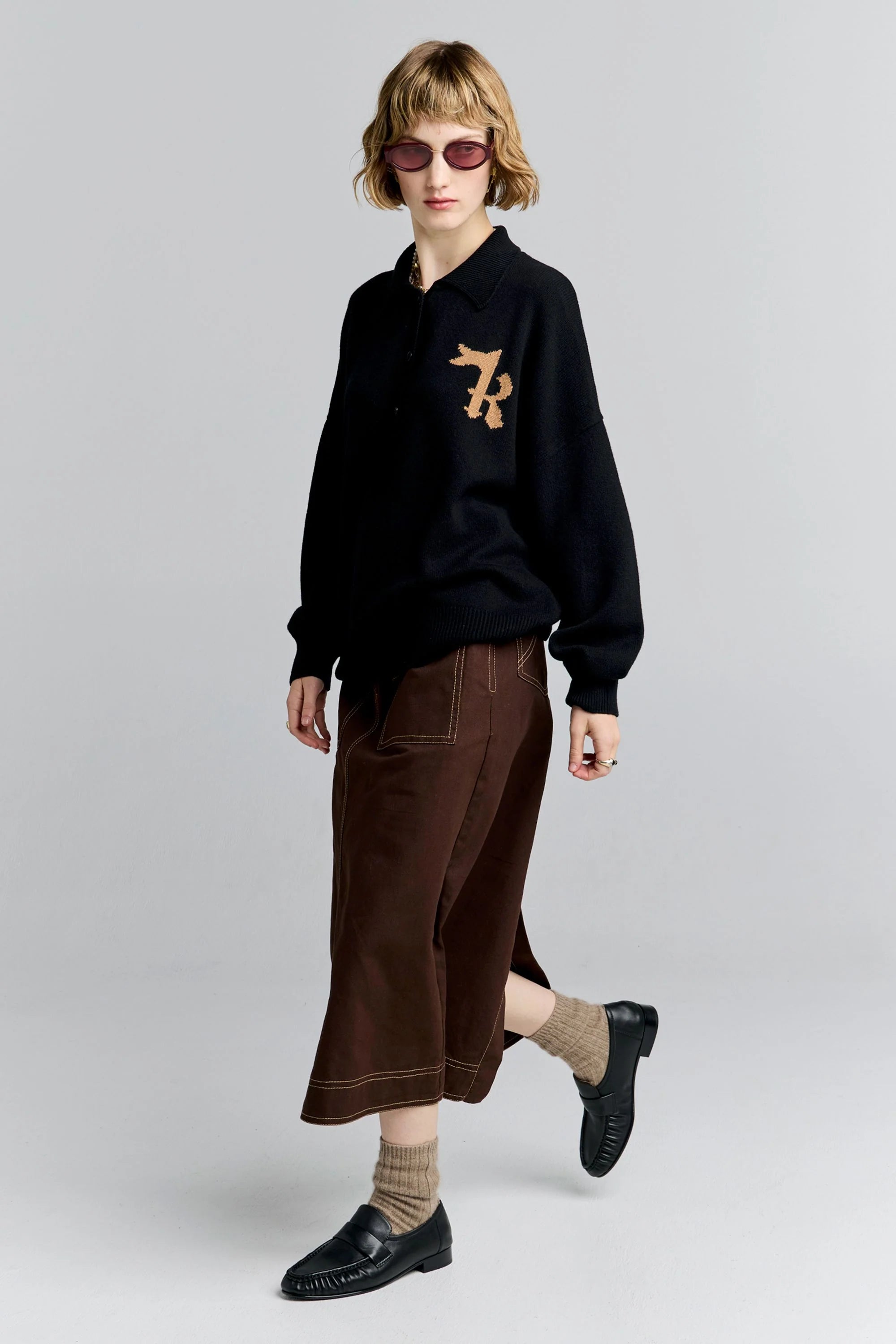 The K Flag Polo reimagines the season’s signature knit in a classic polo silhouette. With its collared neckline and flag intarsia, it combines relaxed knitwear with a tailored edge. Lightweight merino ensures year-round wearability, while the signature motif anchors it as a modern wardrobe staple.