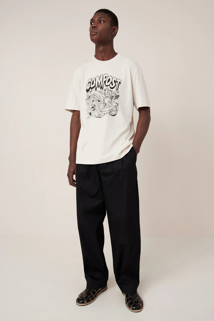Our Staple Tee, made from mid-weight organic cotton jersey, features a custom illustration by @yeehawtheboys. Inspired by band tees and punk aesthetics, the Compost Staple Tee makes a bold statement, promoting the benefits of composting for our communities and the planet.