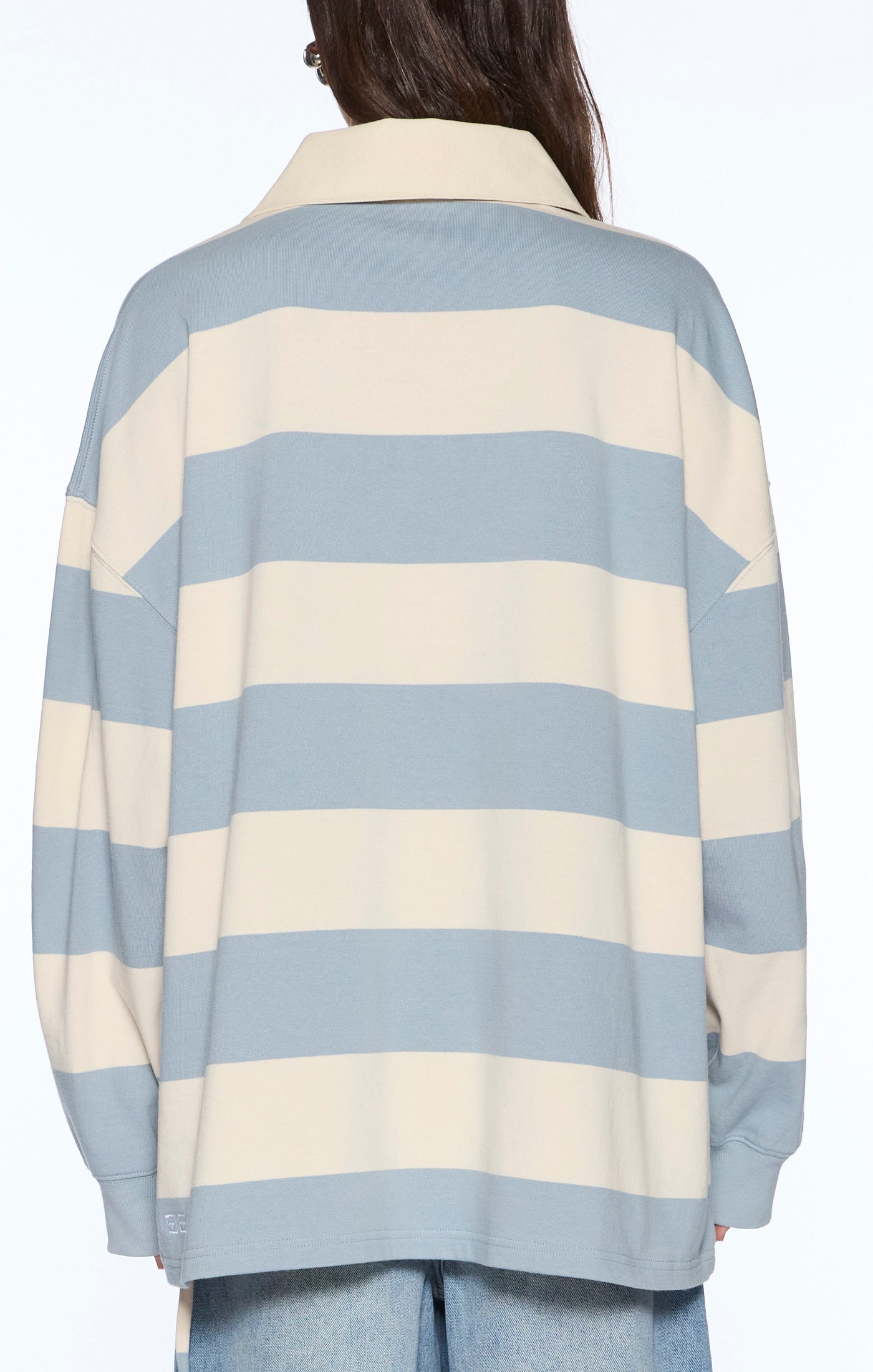 This oversized rugby jersey features dropped shoulders for a relaxed, borrowed-from-the-boys vibe. Classic rugby details include bold stripes, a white point collar, a concealed placket, and rib-knit cuffs. Crafted from heavyweight cotton jersey, it's finished with a shiny silver Ksubi metal plaque and signature T-box embroidery.
