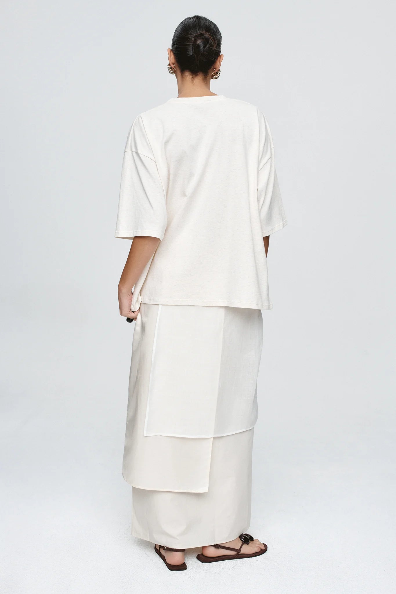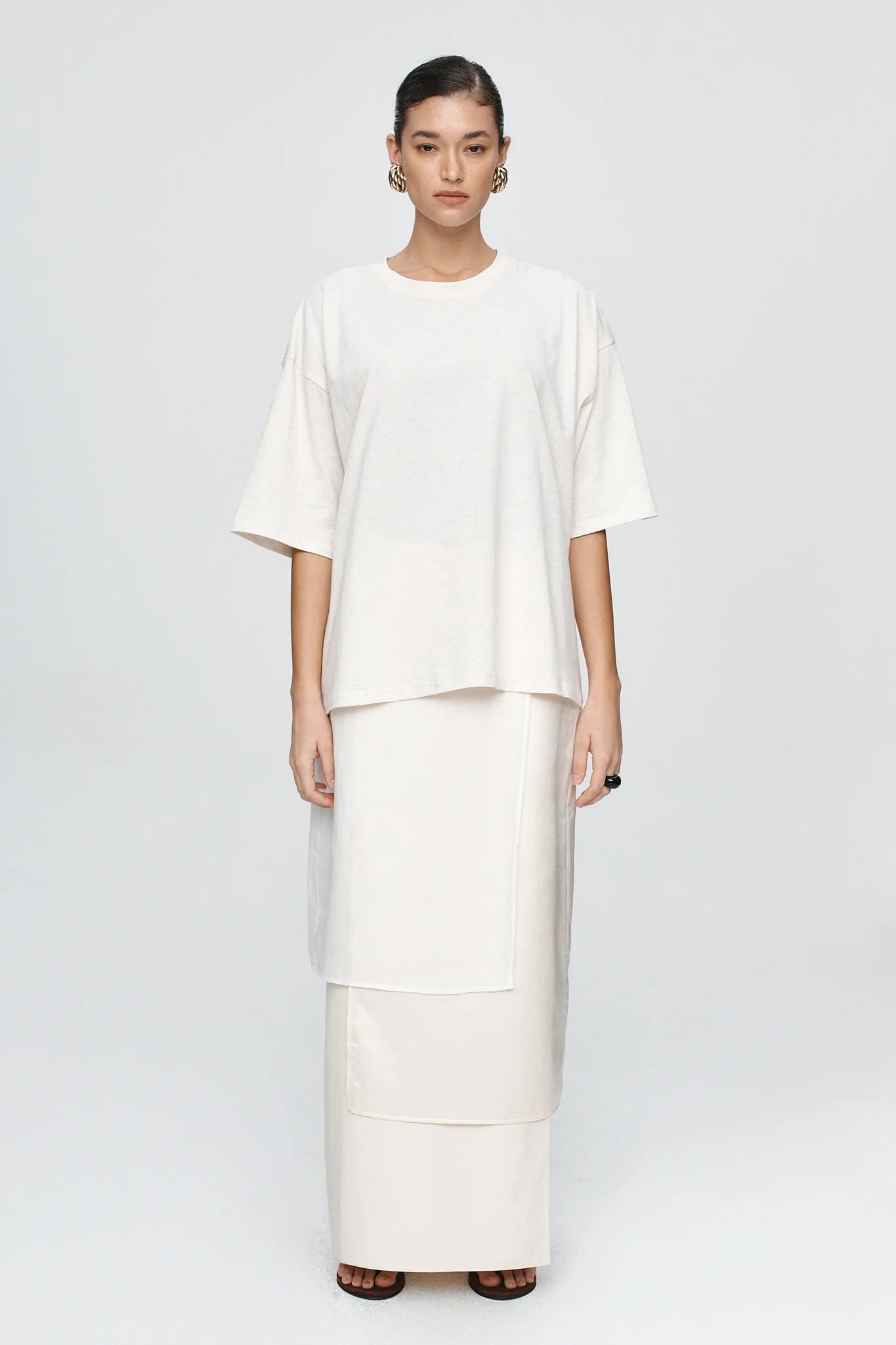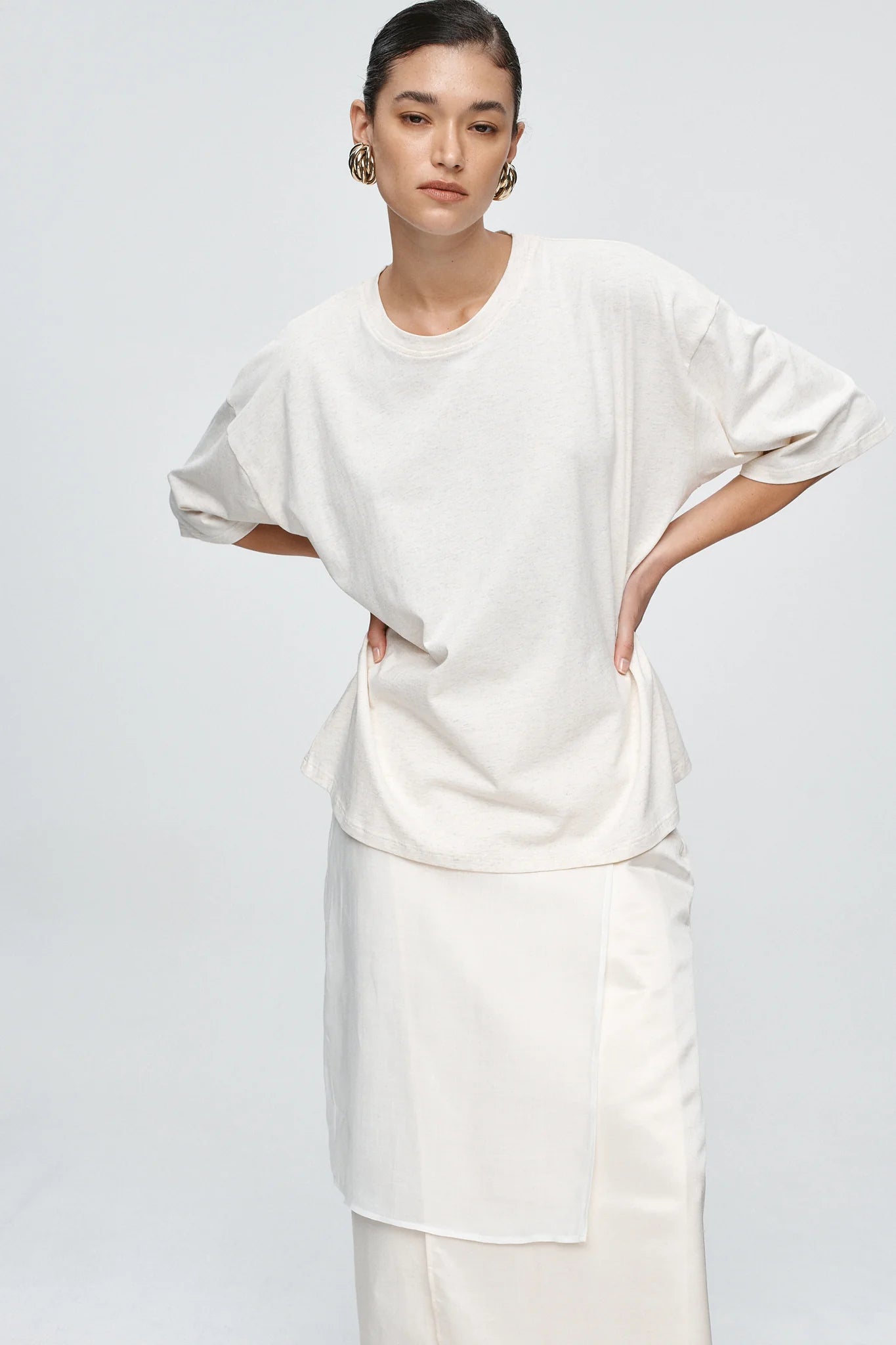 The Austin Tee is crafted in 100% Cotton for a breathable, soft hand feel. Designed with an oversized, boxy shape, it features a round neckline, drop shoulders and elongated sleeves that fall just beyond the elbow.
