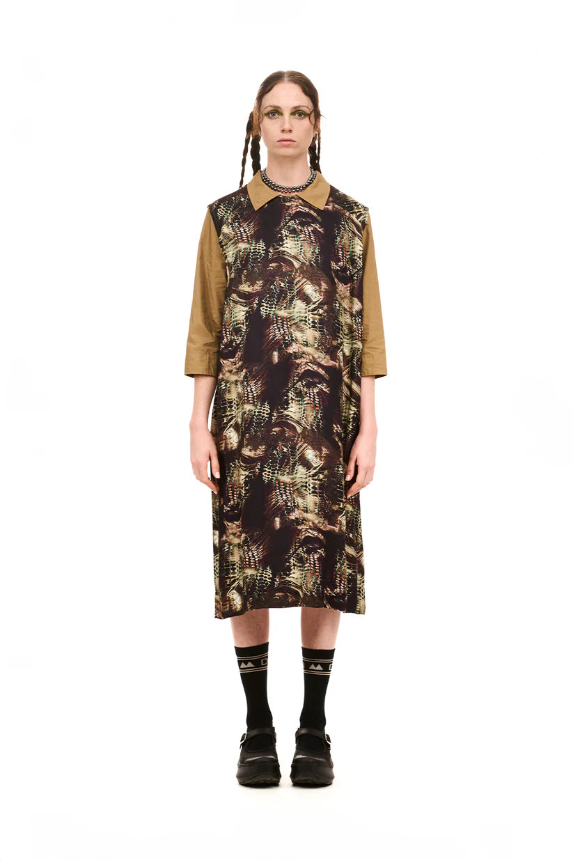 NOTE: This unique print has been produced for NOM*d and some irregularities may occur. We consider this to be a characteristic of the fabric. Due to the large scale of this print each garment may appear different from the one pictured.